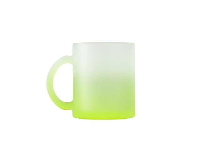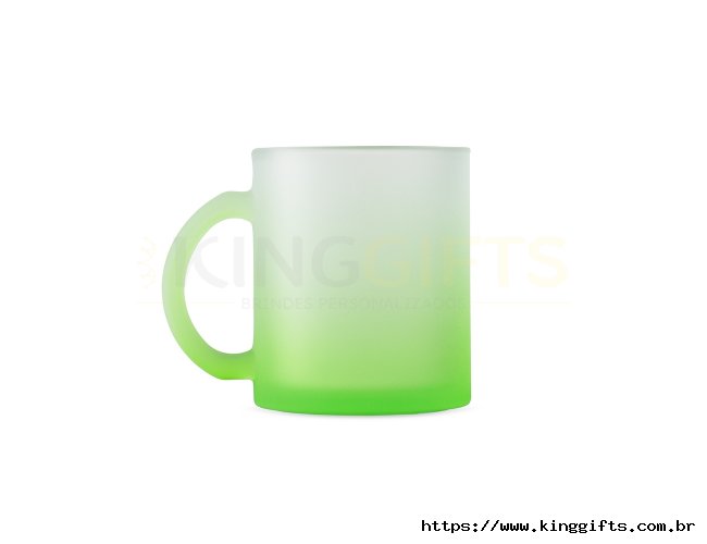 Caneca em vidro com acabamento fosco degradê e capacidade para até 350ml.