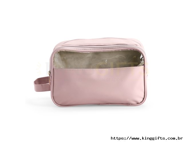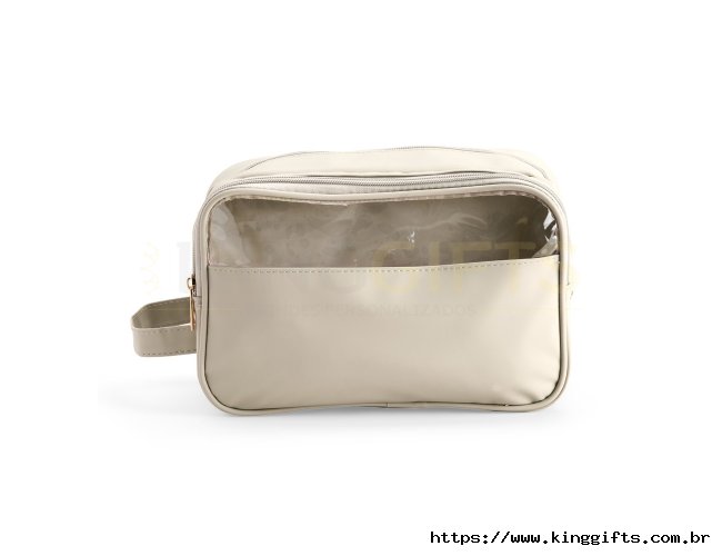 Nécessaire confeccionada em filme sintético de poliuretano impermeável. Possui dois bolsos no compartimento interno principal, sendo um com fechamento em zíper e outro em tela de nylon. Dispõe ainda de compartimento frontal com viseira e revestimento interno em PVC, ideal para guardar itens molhados.
